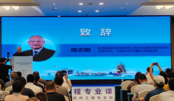 为推动软件工程专业高质量发展,优化软件工程学科布局,深化人工智能与软件工程的交叉融合,教育部高等学校软件工程专业教学指导委员会于7月23日至25日在黄山市举办“2025软件工程专业课程建设暨AI构建软件工程专业教学新范式论坛”。本次论坛由黄山学院和清华大学出版社承办,示范性软件联盟和《计算机教育》杂志社协办。教育部高等学校软件工程专业教学指导委员会秘书长陈志刚,我校党委委员、副院长方辉平,清华大学出版社社长赵鑫及来自省内外90余所高校的130位专家学者出席论坛。论坛由我校信息工程学院负责人主持。