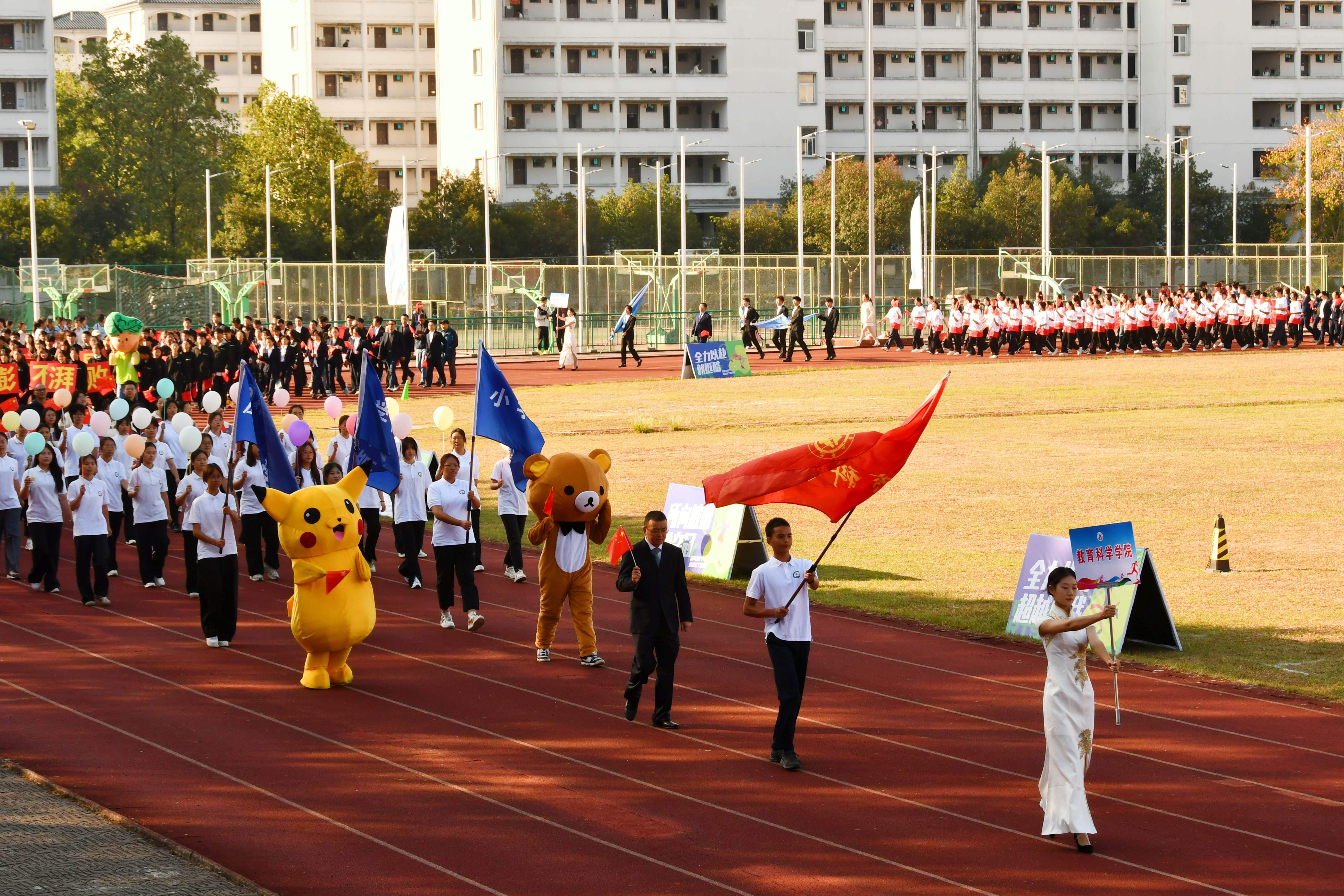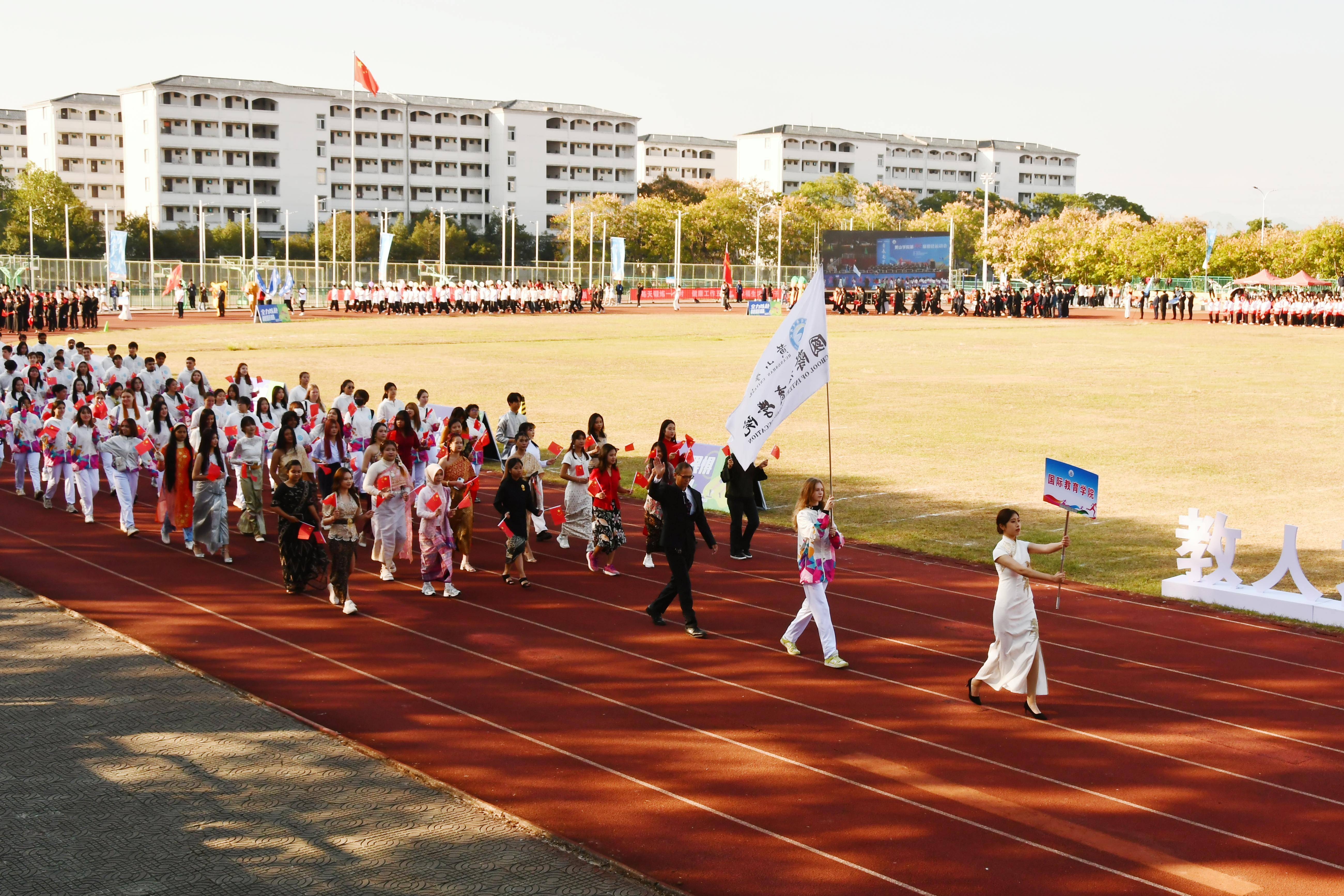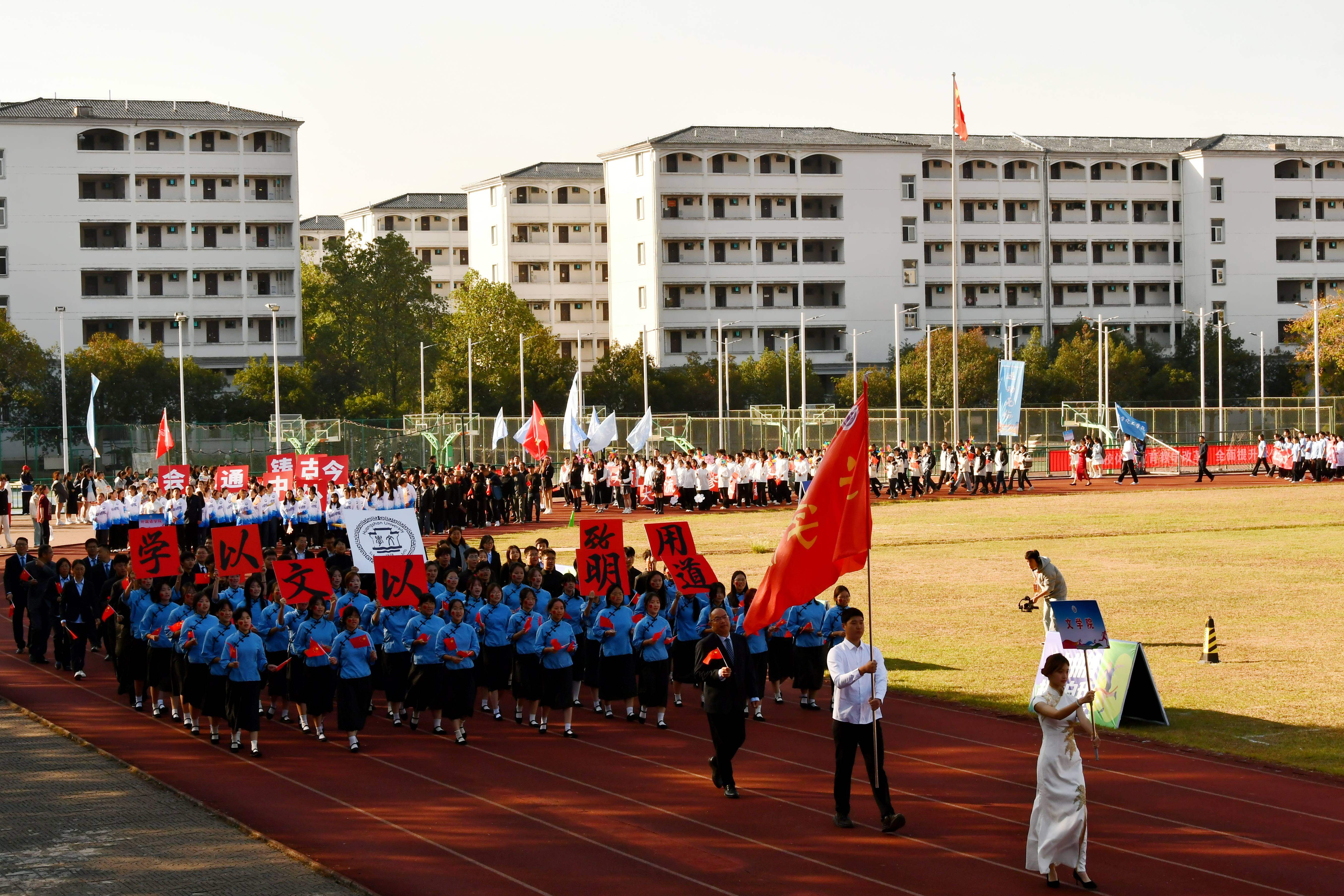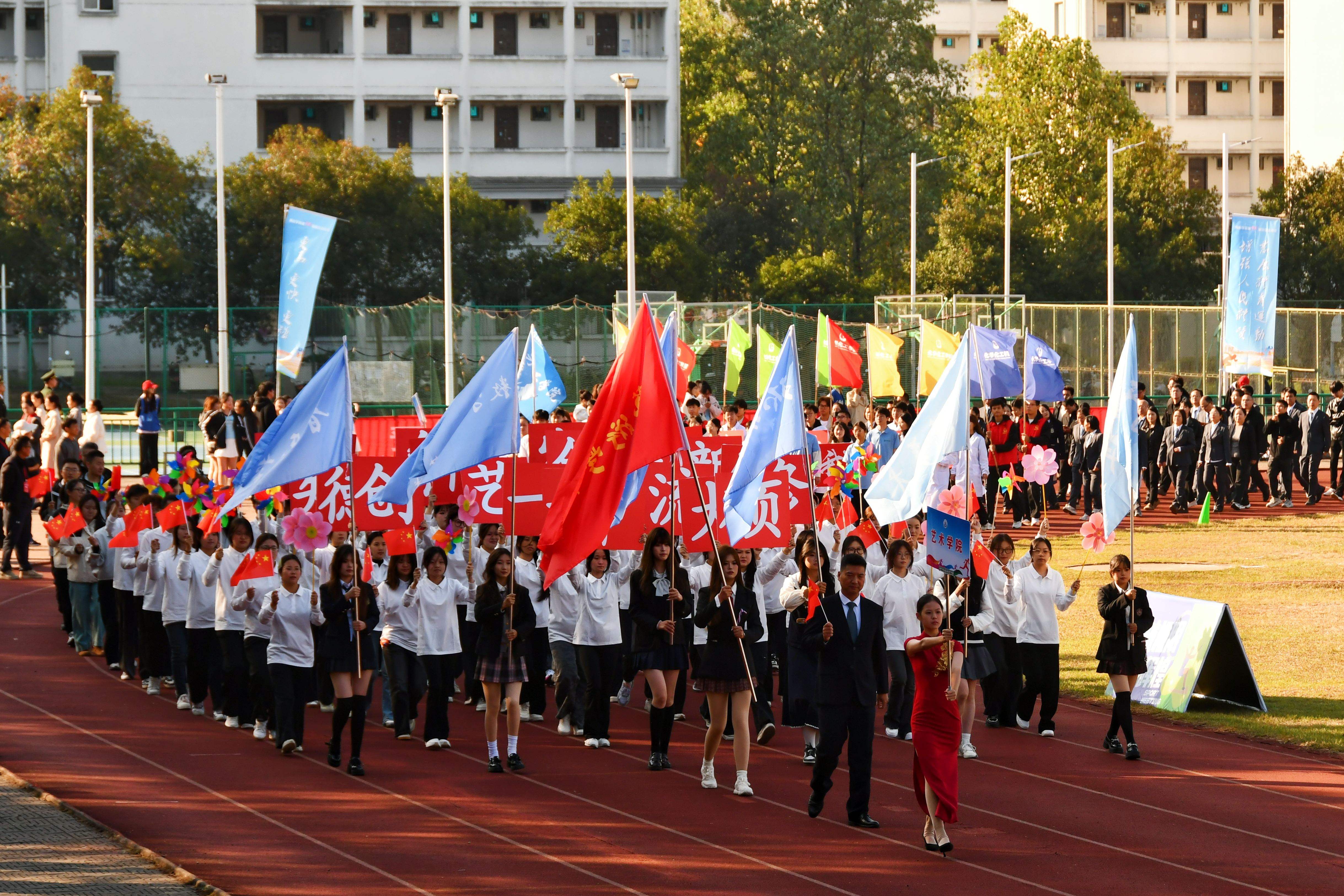 秋高气爽盈校园,彩旗猎猎映朝阳。10月23日上午,我校第46届田径运动会在率水校区第一田径场开幕。校领导李庆宏、刘力、张小明、胡海生、方辉平,黄山市体育局党组书记、局长宣红燕出席开幕式。校体委副主任、校体委各组成部门的主要负责人、各学院书记参加开幕式并在主席台就座。开幕式由校党委委员、副院长张小明主持。