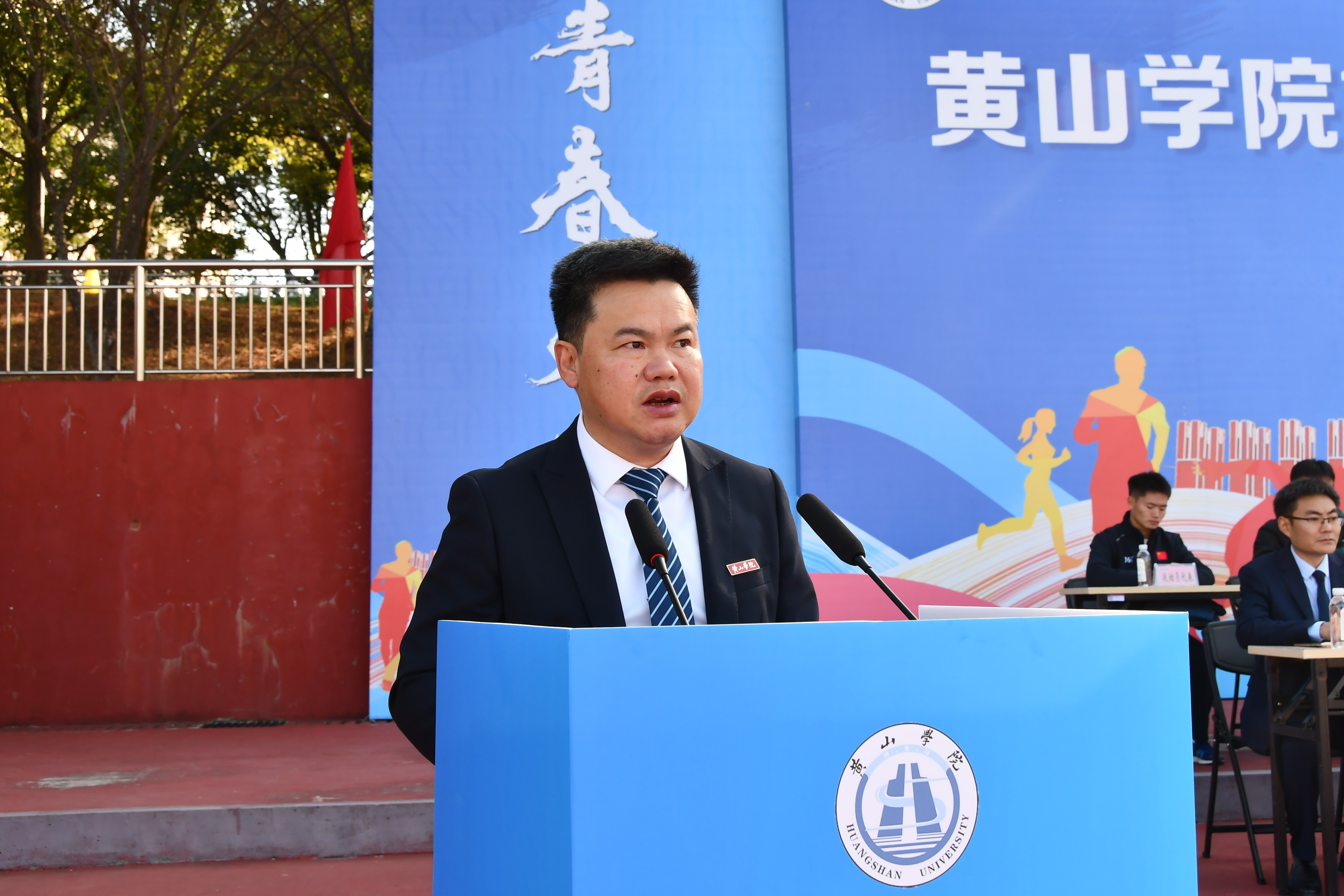 校党委委员、副院长方辉平致开幕辞。他希望全体运动员发扬“更高、更快、更强、更团结”的奥林匹克精神,恪守公平竞争原则,尊重规则、尊重裁判、尊重对手;希望全体裁判员与工作人员忠于职守、秉公执裁,维护秩序、保障公平;希望各单位带队老师、辅导员及志愿者同学们通力协作,悉心保障,传递温暖;希望全体同学文明观赛,友爱助威,展现黄山学院学子良好的精神风貌,共同营造热烈、和谐、安全、有序的赛场氛围。他呼吁广大师生将赛场拼搏精神融入日常,让健康理念深入人心,共同书写学校高质量发展新篇章,最后预祝运动员取得佳绩、运动会圆满成功。