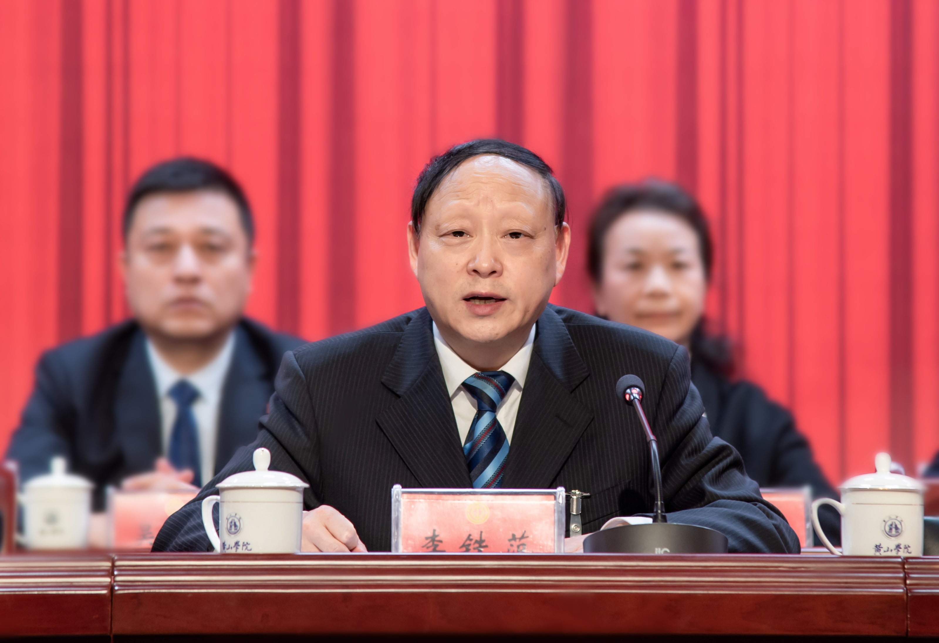 校党委副书记、院长李庆宏作题为《改革创新 实干笃行 奋力开创地方应用型高水平大学建设新局面》的学校工作报告。报告指出,自学校第四次教代会暨工代会以来,全校上下奋力推进高质量内涵式特色化发展,在党建引领、人才培养、师资建设、学科发展、科学研究、开放办学、服务地方、内部治理、办学保障等方面取得扎实进展,地方应用型高水平大学建设迈上新台阶。报告客观分析学校当前面临的困难和挑战,科学研判未来发展机遇和方向,强调未来五年是学校全面深化改革攻坚期,是提升办学层次跨越期,更是为创建“黄山大学”夯基垒台的关键期,全校上下要保持“赶考”的心态、“攻坚”的姿态、“先行”的状态,科学应变、主动求变,在时代大考中抢占先机,赢得未来。报告从八个方面科学谋划未来五年学校发展的重点任务与举措:聚焦政治统领,着力谱写事业发展新篇章;聚焦立德树人,着力构建人才培养新体系;聚焦人才强校,着力构筑一流师资新高地;聚焦内涵提升,着力塑造学科竞争新优势;聚焦创新驱动,着力探索有组织科研新范式;聚焦开放融合,着力拓展国际合作新空间;聚焦治理增效,着力激发干事创业新活力;聚焦师生关怀,着力打造校园建设新样态。