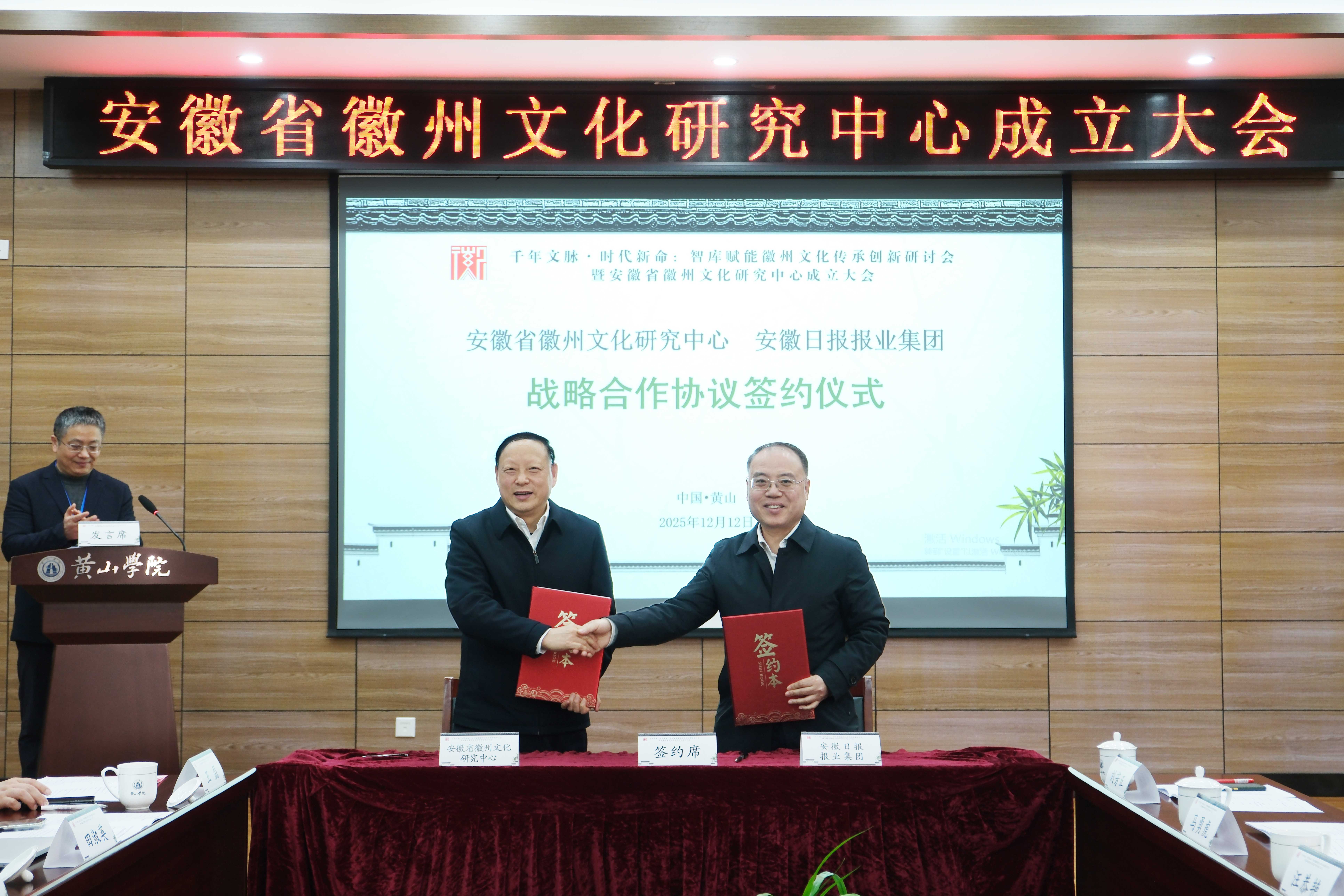 12月12日,由安徽省社会科学院、黄山学院、安徽省徽州文化研究中心主办的千年文脉·时代新命:智库赋能徽州文化传承创新研讨会暨安徽省徽州文化研究中心成立大会在黄山召开。该中心旨在深入贯彻习近平总书记考察安徽重要讲话精神,落实安徽省委关于“五大文化”研究部署,推动徽州文化的创造性转化与创新性发展。