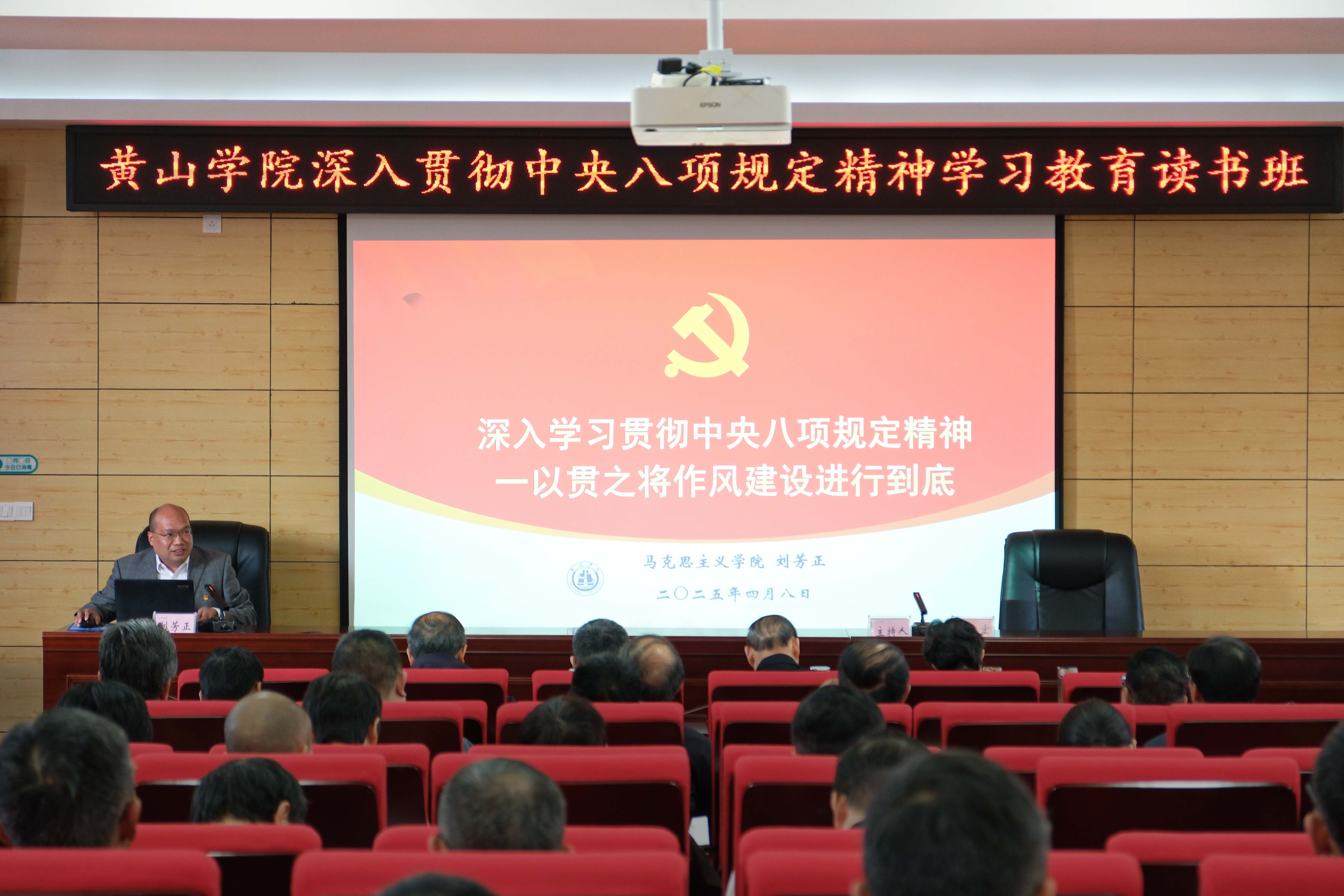 本次读书班采取集中学习、个人自学、专题辅导、集中研讨等方式深入推进。学校领导班子成员坚持以上率下,带头原原本本学《习近平关于加强党的作风建设论述摘编》、中央八项规定及其实施细则,习近平总书记在贵州、云南考察时关于开展深入贯彻中央八项规定精神学习教育的重要讲话等,准确把握原文原理、深入领会精髓要义;认真聆听专题辅导报告,通过重要节点回顾和典型案例剖析,深化对中央八项规定及其实施细则精神的理解把握;深入开展党委理论学习中心组集体学习研讨,采取“重点发言+随机发言”相结合的方式,校领导李庆宏、章文静、胡海生、方辉平,旅游学院、建筑工程学院、安全管理处、后勤集团等单位负责人作了重点发言,纪委办、财务处负责人作随机点名发言,大家结合工作实际交流体会感悟、明确思路举措,进一步筑牢以作风建设新成效推动学校事业高质量发展的思想根基。