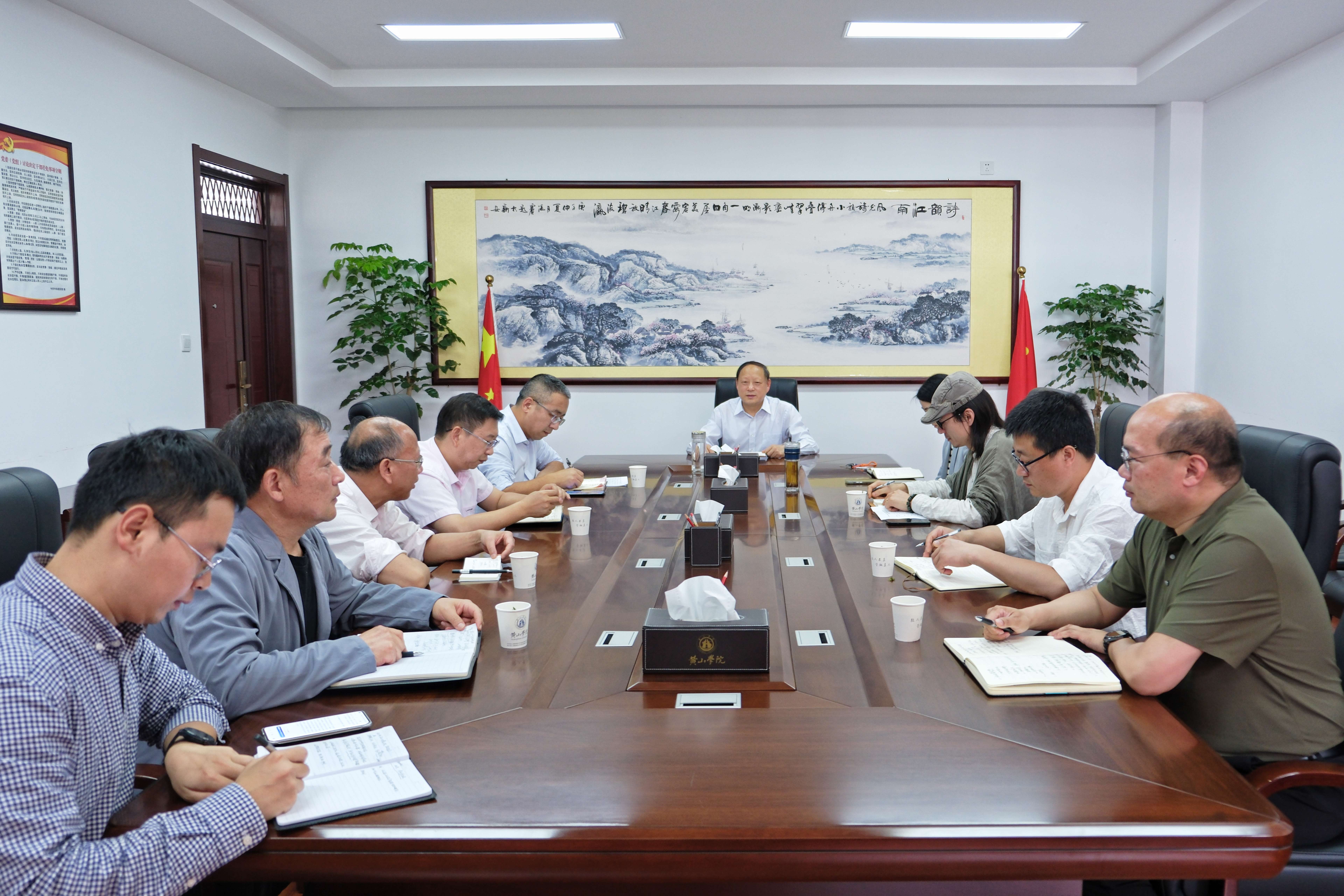 为学习贯彻习近平总书记考察安徽重要讲话精神,推动中央八项规定精神学习教育走深走实,5月7日下午,我校在率水校区文昌楼南楼301会议室召开徽州文化创造性转化和创新性发展座谈会。校党委书记李铁范主持会议并作总结讲话,副院长姜红,办公室、科研处、旅游学院、马克思主义学院、艺术学院等相关单位负责人以及徽学研究专家参加会议。