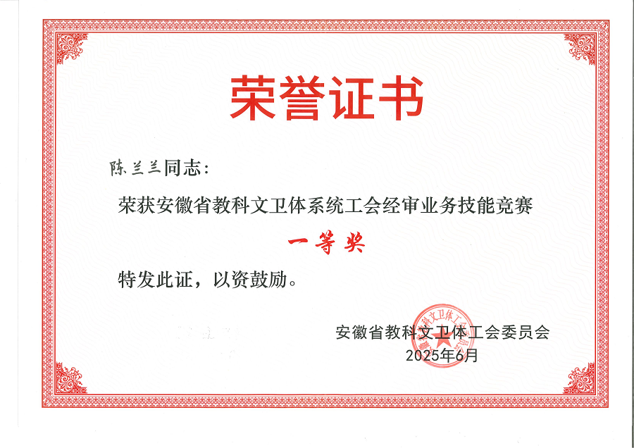 我校教师在安徽省教科文卫体系统工会经审业务技能竞赛中斩获佳绩
