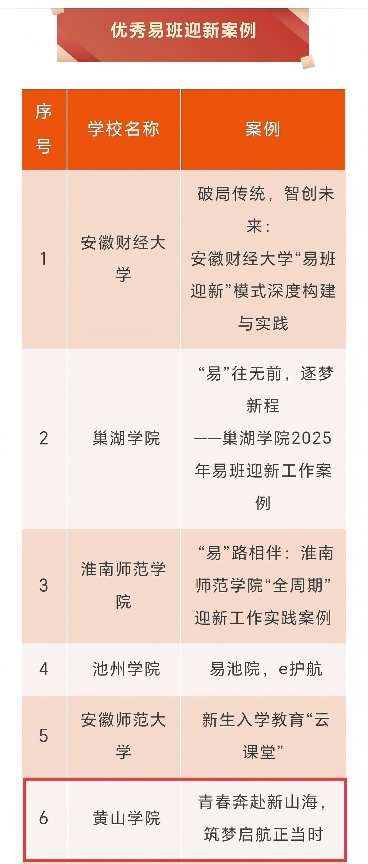 在迎新工作创新实践中,我校打造的“青春奔赴新山海,筑梦启航正当时”主题迎新案例,凭借丰富多样的活动、详实的活动数据和精准贴心的服务,成功入选“优秀易班迎新案例”。该案例紧扣新生需求,策划开展新生喜闻乐见的系列迎新活动。依托易班优课平台系统推进入学教育,不仅为新生架起便捷入学、快速融入校园的桥梁,更以“暖心、贴心、用心”的服务理念,切实提升新生入学体验,筑牢新生思想政治教育的“第一课”。