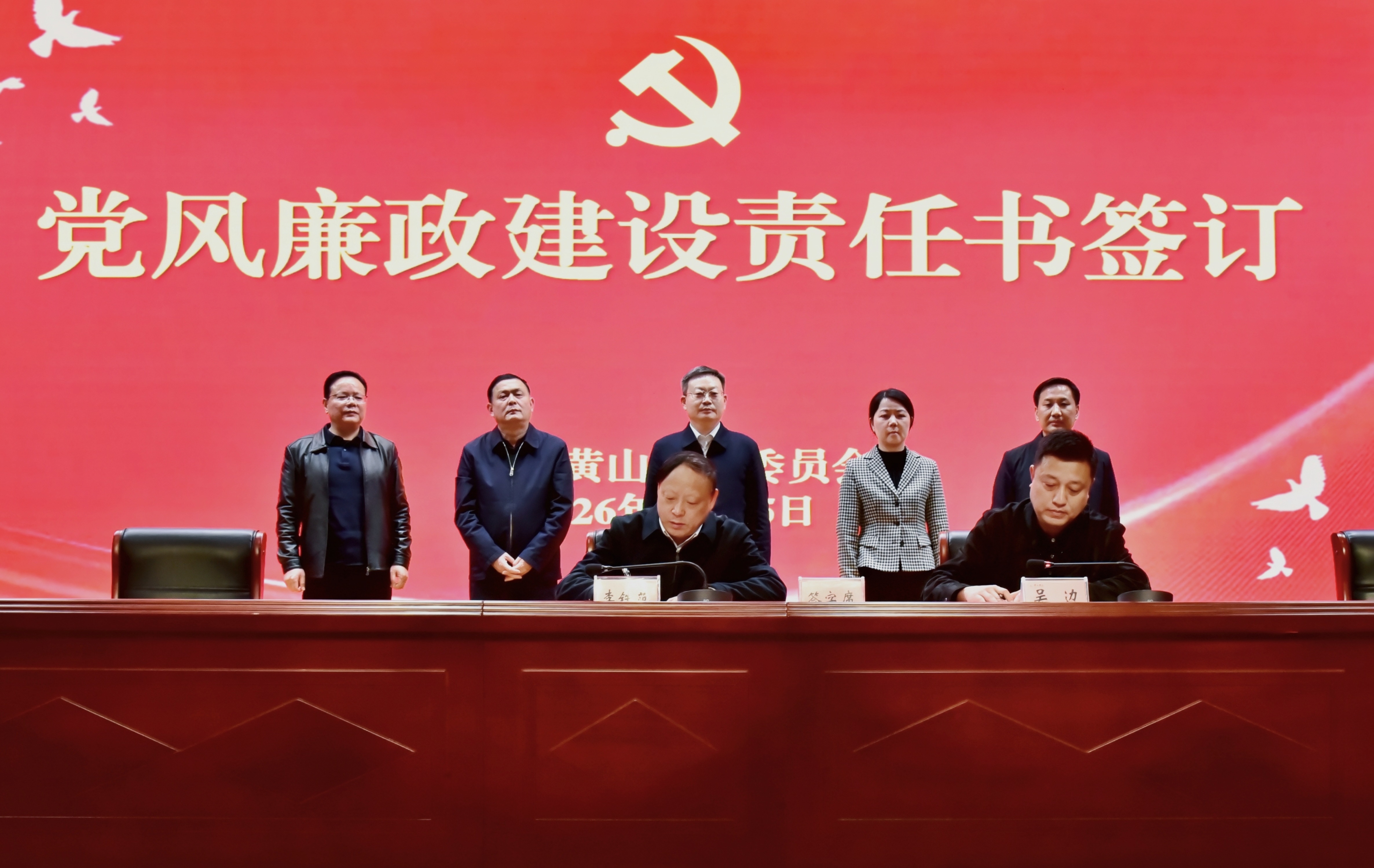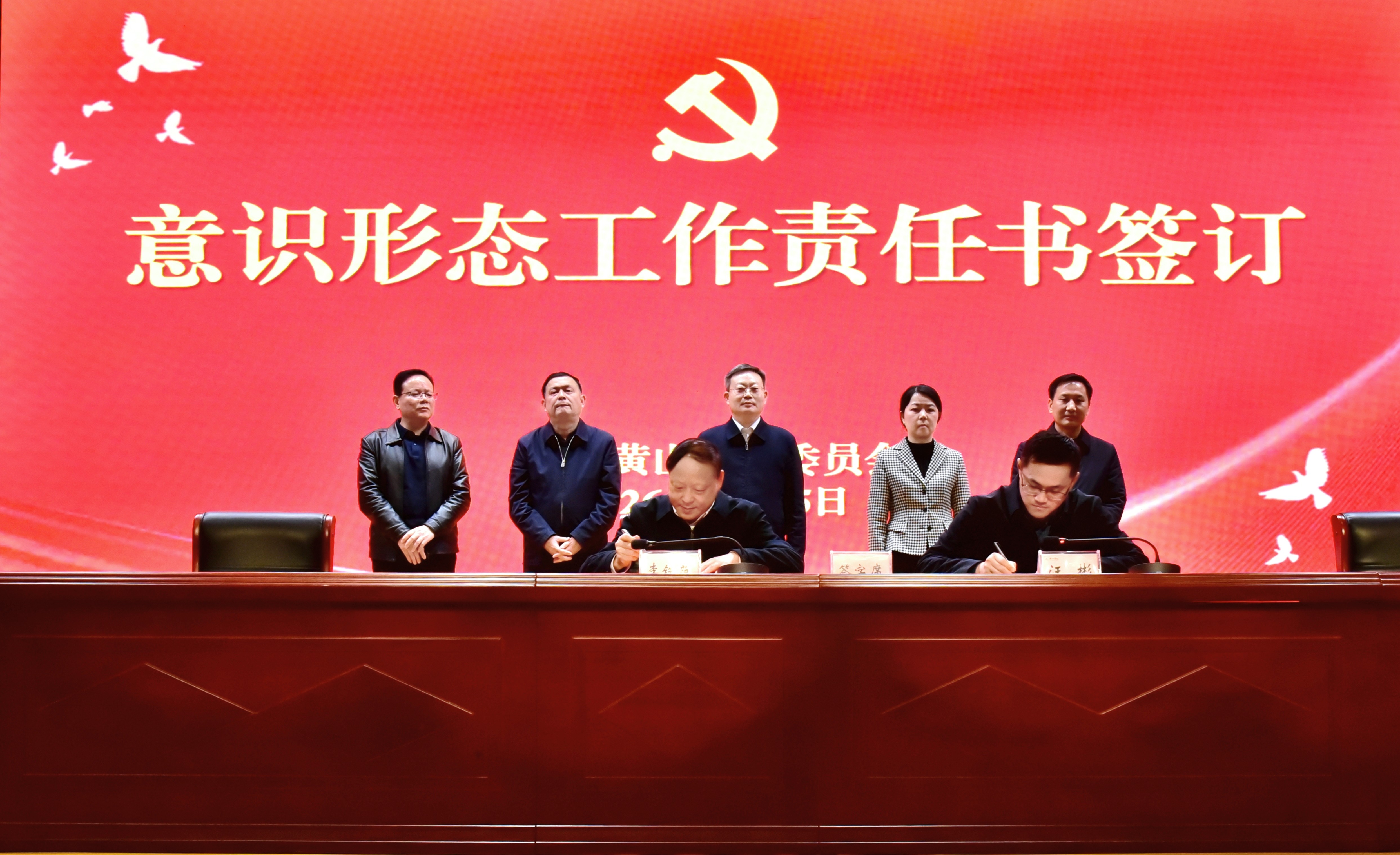 党委办公室、化学化工学院、学生处、生命与环境科学学院相关负责人分别代表部门、学院签订2026年党风廉政建设责任书、意识形态工作责任书。